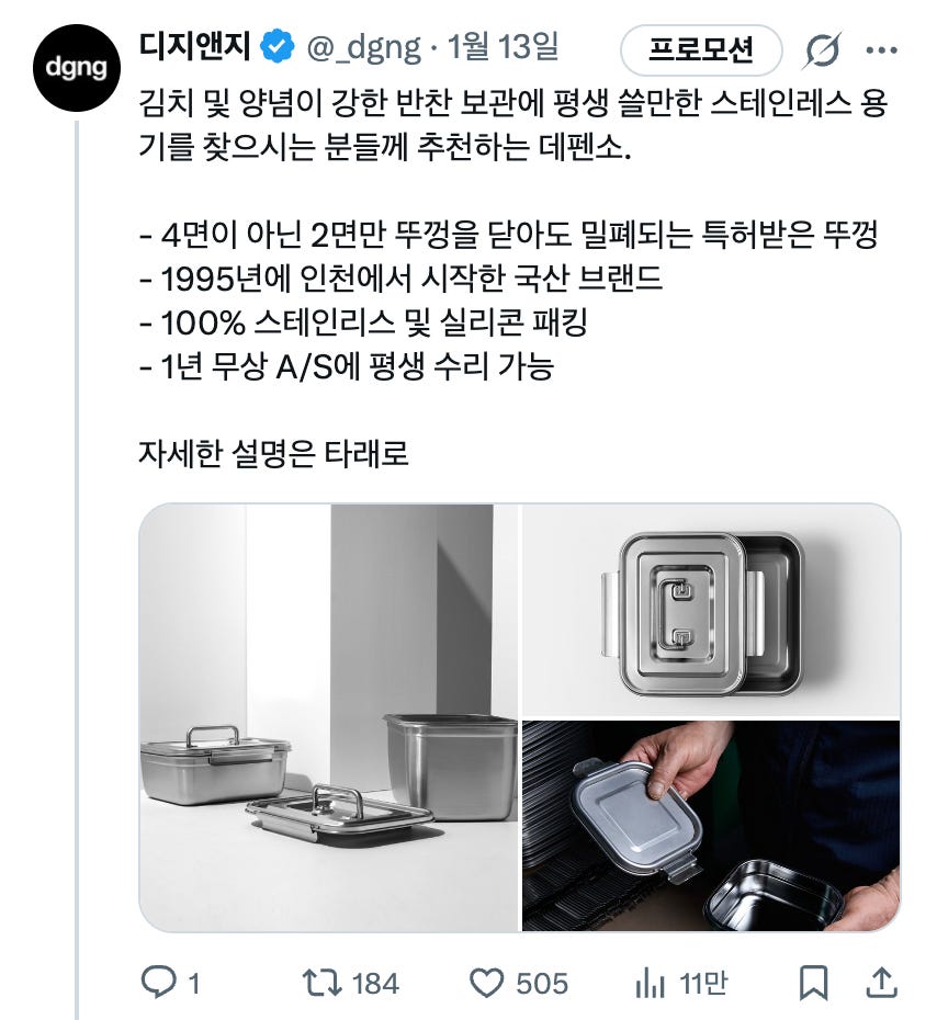 스테인레스 용기의 종착지, 데펜소를 소개합니다. 데펜소는 이 카테고리에서 더 좋은 게 나올 수 있을까 싶을 정도로 멋진 제품인데요. 김치통과 반찬통으로 이만 한 게 없지 않나 싶습니다. 이에 대해 자세한 이야기는 웹사이트에서 읽으실 수 있습니다.